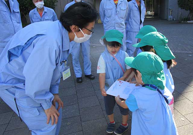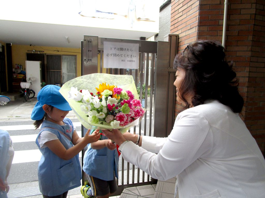 | 6月 | 花の日訪問/個人面談/年長児お泊り保育 花の日訪問では、子ども達が家庭から持ち寄ったお花を花束にして近くの施設やディケアーサービスなどに届けています。 個人面談では、園の様子をお伝えしたり保護者との情報交換をしています。 |