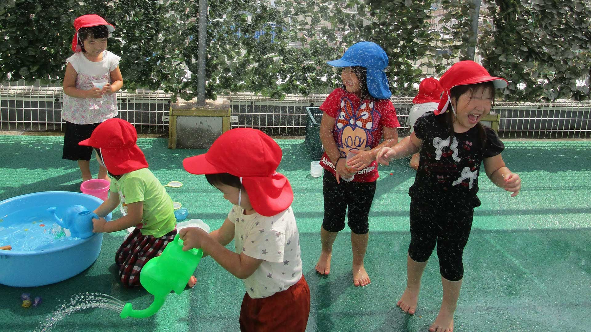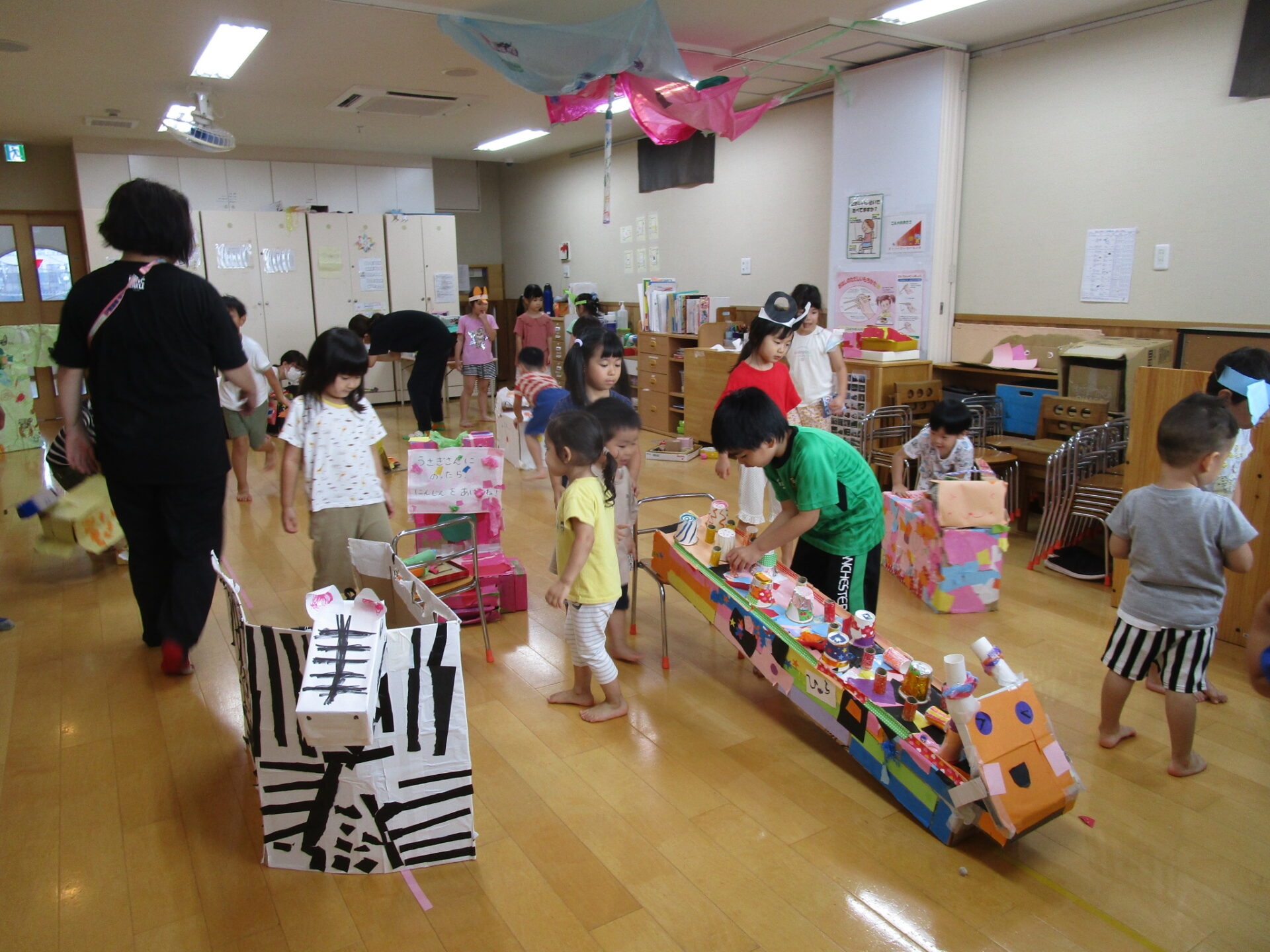 | 7月 | プール開き/個人面談/夏まつり 夏まつりは、保護者の皆さん、地域、職員が一つになって子ども達の楽しい一日を作り上げています。 |