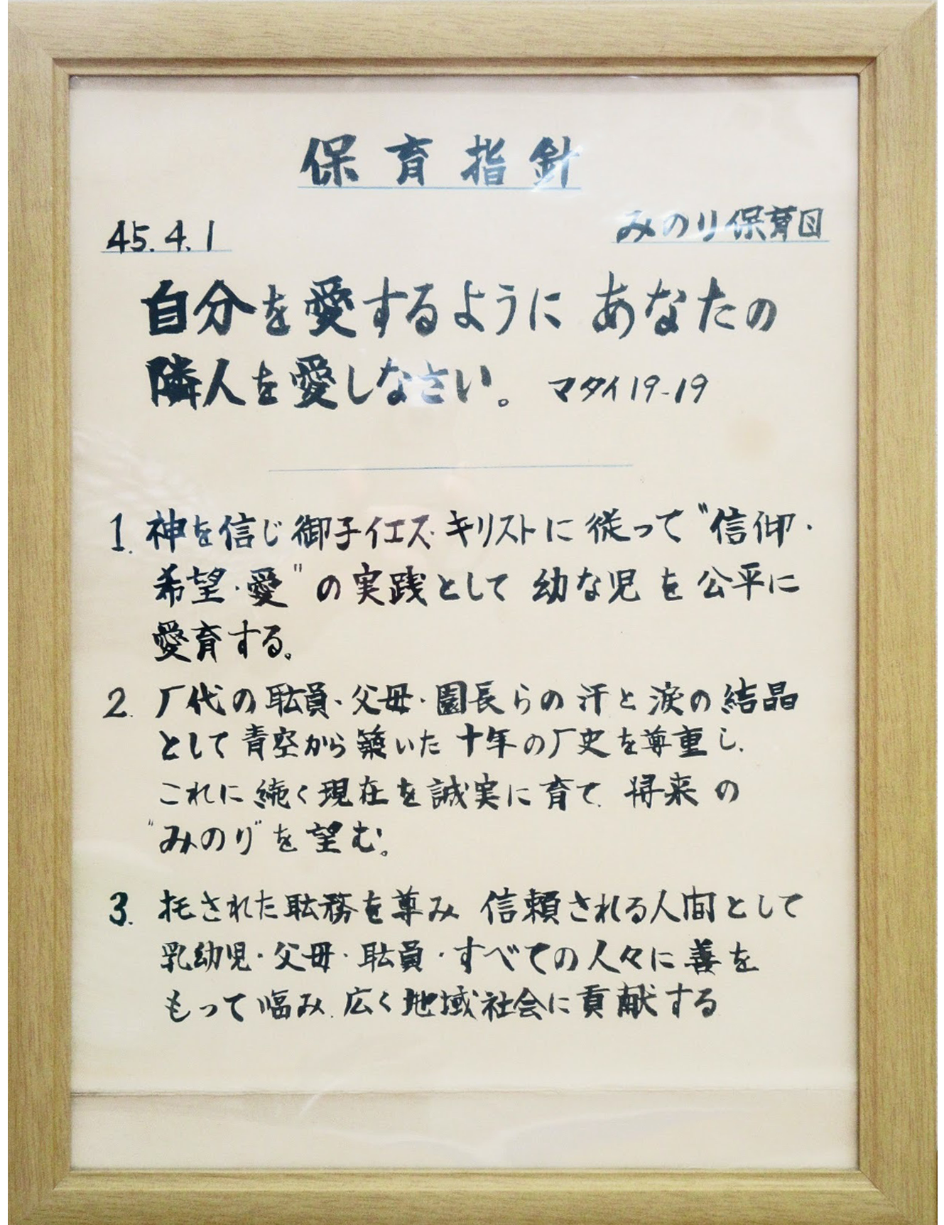 | 1970年04月01日 | 園舎落成/みのり保育園開園 |