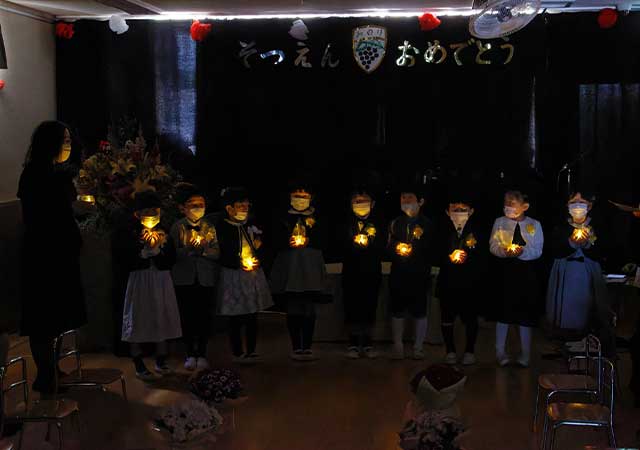 | 4月 | 入園進級の集い 入園のご希望がある方は、ぜひ園見学にお越しください。 10日前後に審査がありますので早めに調べてお申し込みください。 在園児と共に入園をお待ちしております。下旬には、保護者会を予定しています。 |